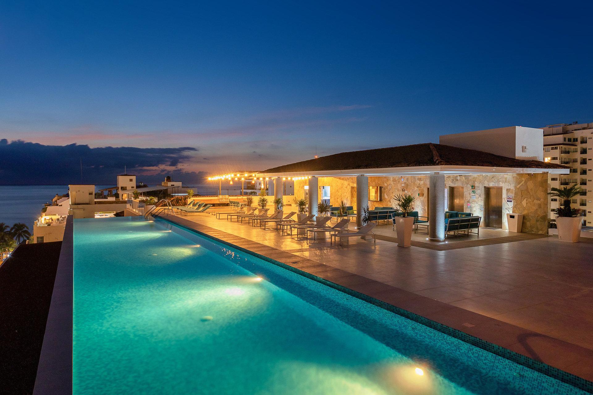 Relax on the newly remodeled rooftop terrace featuring a heated pool, bar, and entertainment area — your private spot to unwind and enjoy unforgettable sunsets.